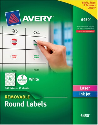 Avery Removable Laser/inkjet Id Labels - 1" Diameter - 945 / Pack - Round (6450) 72782064501 | eBay